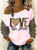 Women's Jesus The Way The Truth The Life Leopard Print Casual Off-Shoulder Top