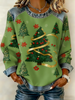 Women's Retro Christmas Print Denim Patchwork Top