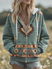 Women's Vintage Western Aztec Art Zip-Up Hoodie